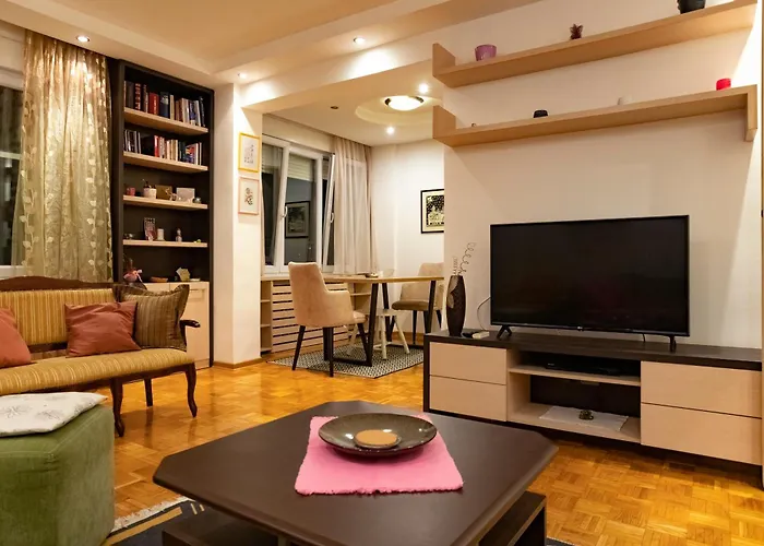 Az apartman gondoskodik kényelméről sütővel a teljesen felszerelt konyhában. A Milentija Popovica buszpályaudvar innen gyalog 5 percre van.